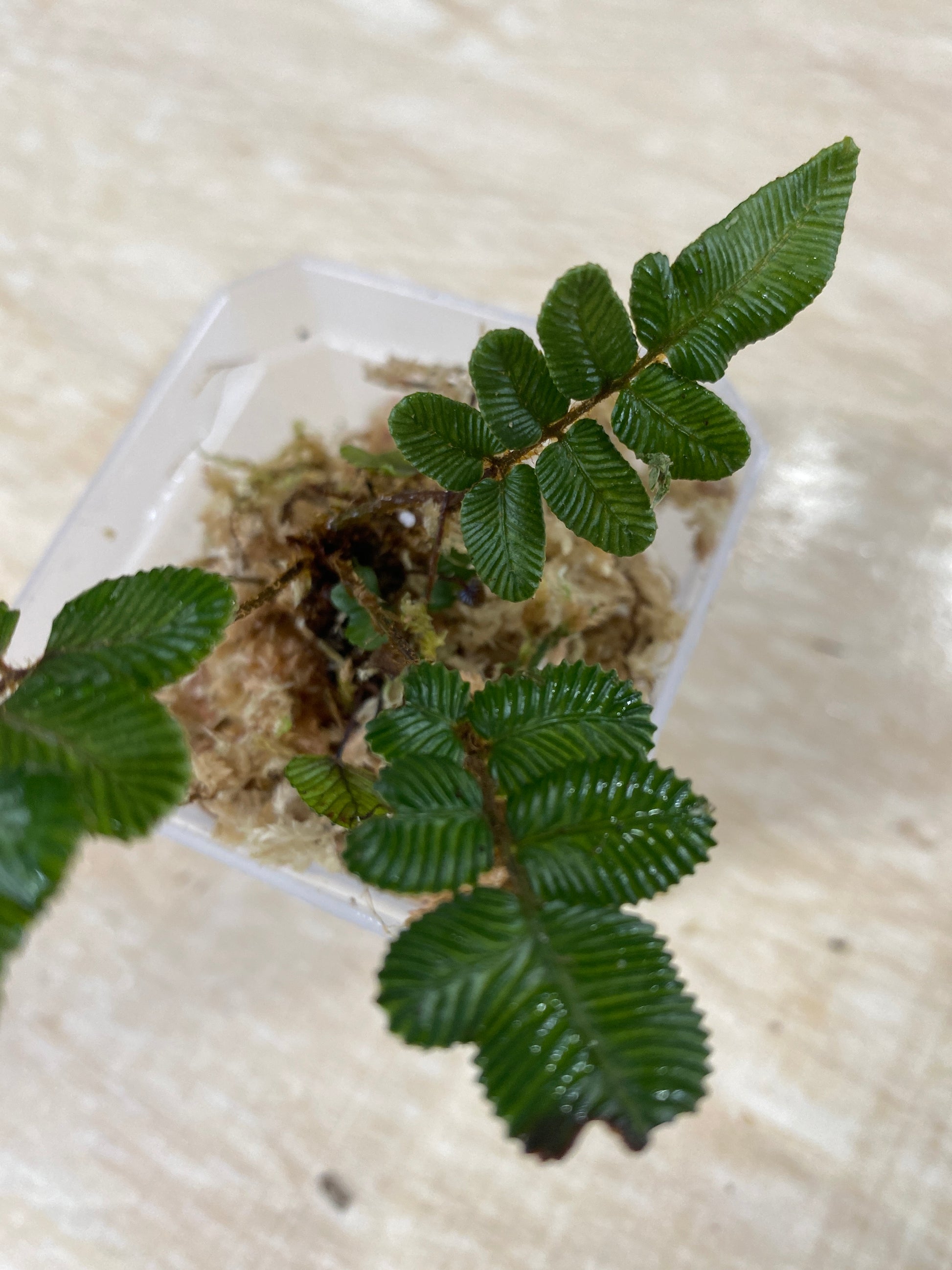 Danaea sp. Northern Peru is a striking tropical fern prized by collectors for its distinctive deeply lobed fronds and elegant growth habit. Native to the humid cloud forests of northern Peru, this species thrives in warm, consistently moist environments with indirect light and high humidity. Ideal for experienced plant keepers seeking a challenging addition to their collection, it requires well-draining substrate rich in organic matter and benefits from regular misting. A rewarding choice for those with the expertise to provide its specific environmental needs.