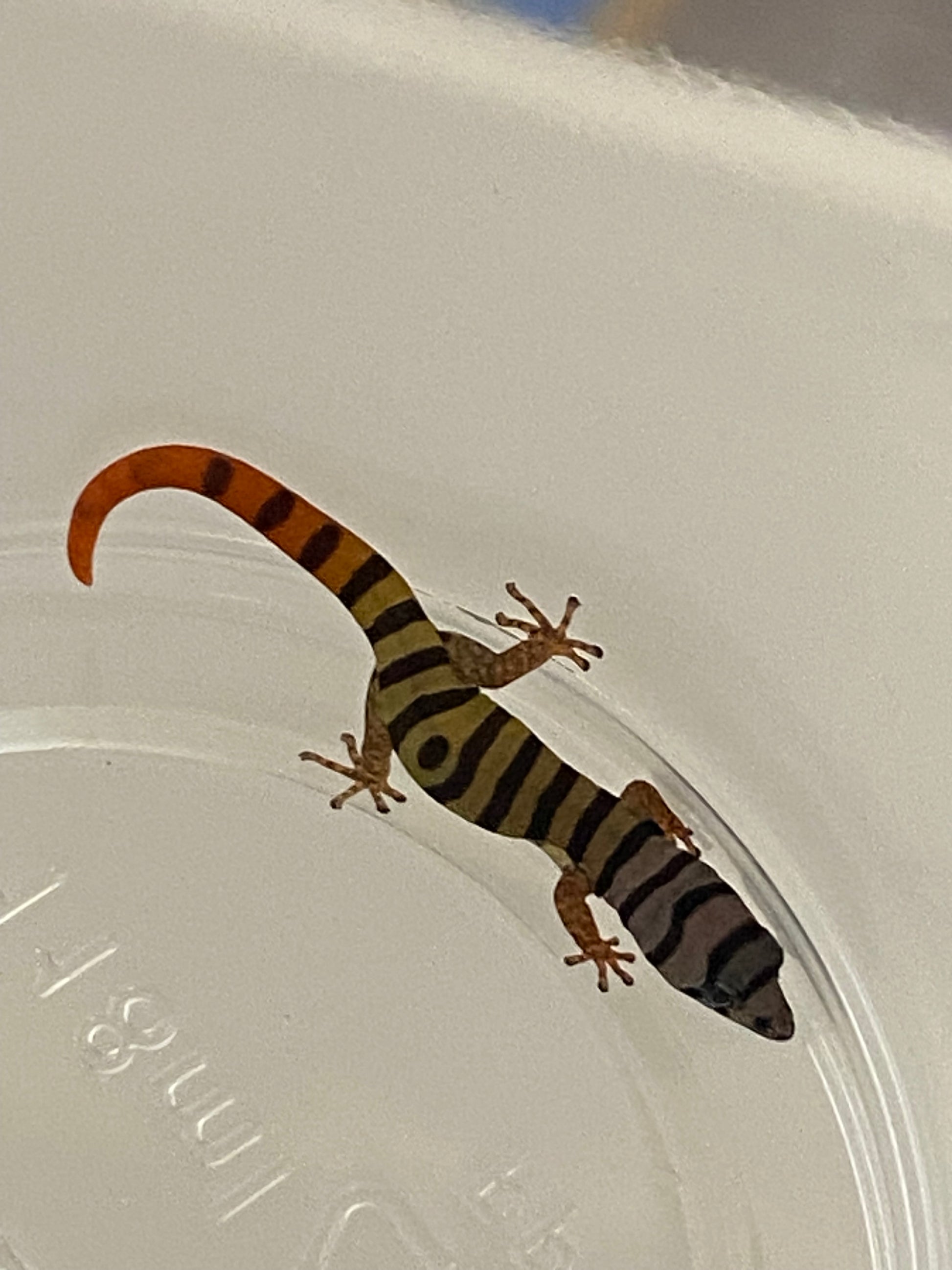 Elegans (Sphaerdactylus Elegans) gecko is native to Cuba and Hispaniola. Sometimes known as the Ashy gecko. These small geckos don't require a large tank, a 8x8x12 or 12x12x12 work well. As with other micro geckos, they are best kept solo or as a pair. Sphaerodactylus micro geckos are equipped with toe pads and can climb smooth surfaces like glass; because hatchlings and juveniles are very small, any accessible escape routes must secured!