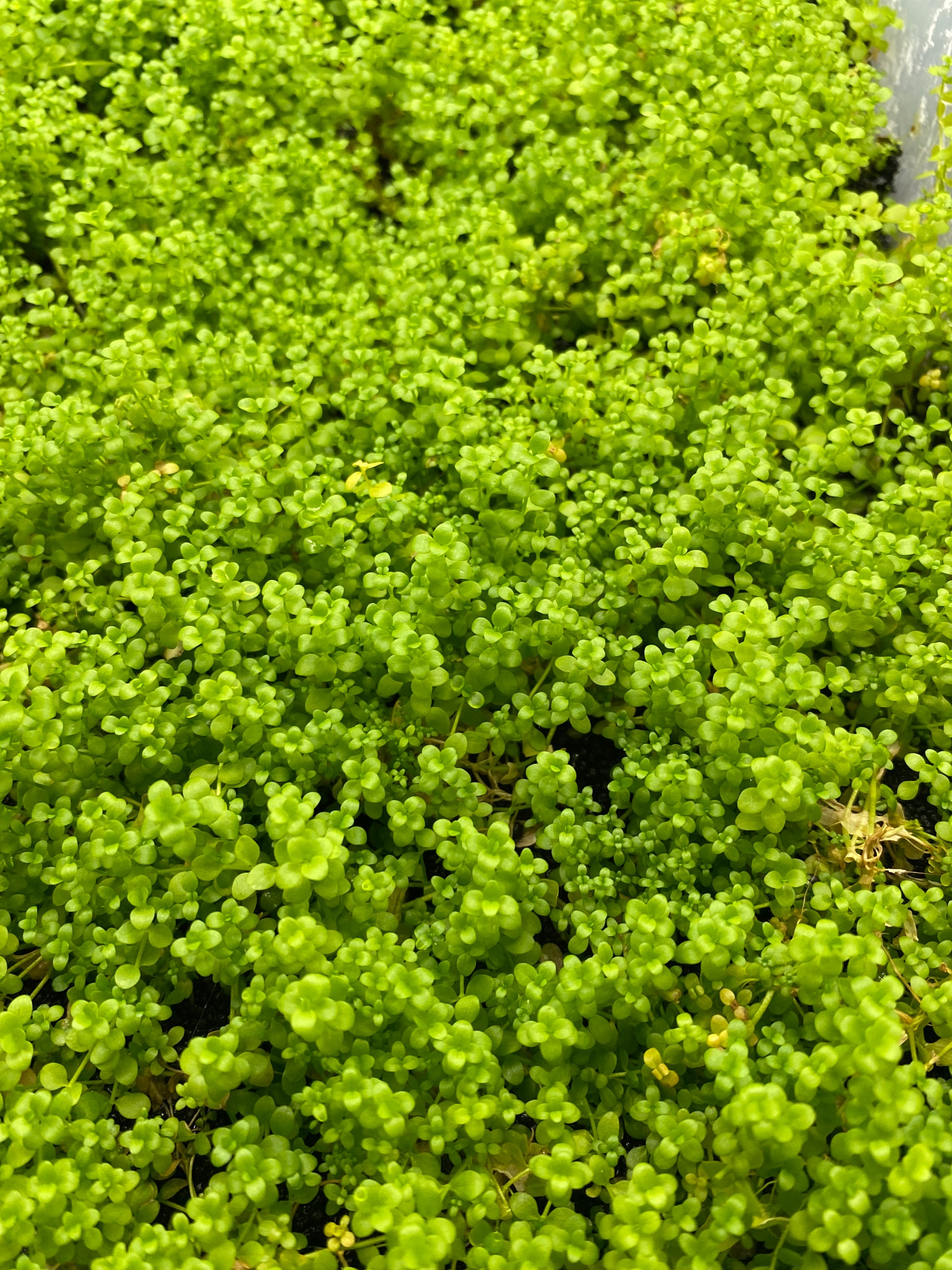Micranthemum 'Monte Carlo' originates from Argentina. It has compact, round and fresh light green leaves on creeping stalks and creates a fast-growing carpet in the terrarium. The plant can grow in light shadow, but requires good light conditions, as well as CO2 additive, in order to develop optimally and become really compact.