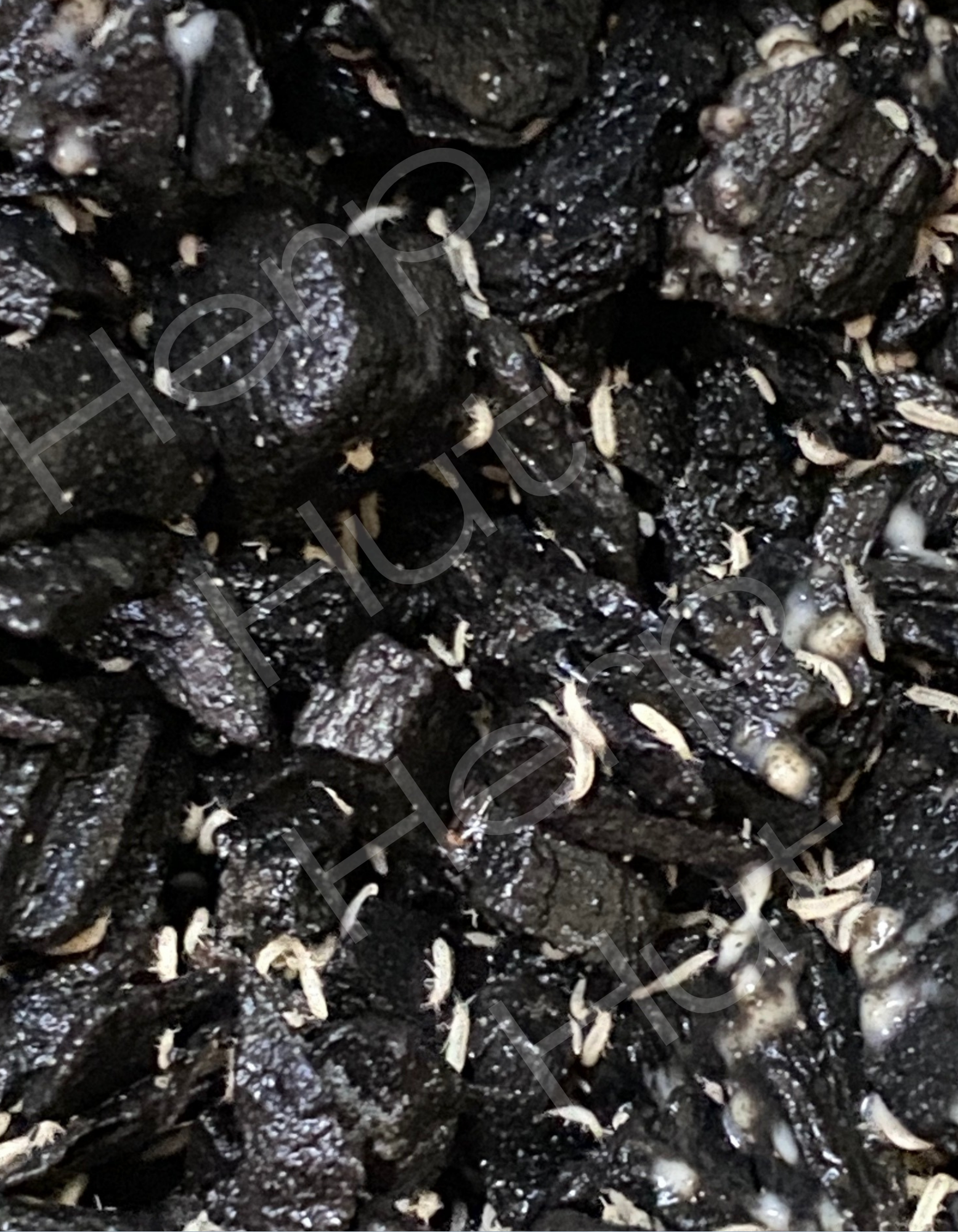 White springtails come in an 8 oz deli cup on charcoal.